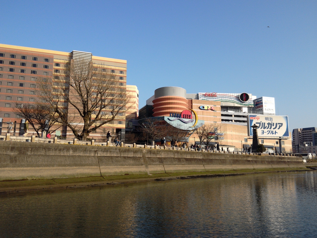 天神と中洲地区を散策しランチ後に一度体験してみたいと思っていた水上観光バスに乗船してみました。日中の30分クルーズは那珂川上流、キャナルシティが見える場所まで行きその後、下って博多湾まで行きます。