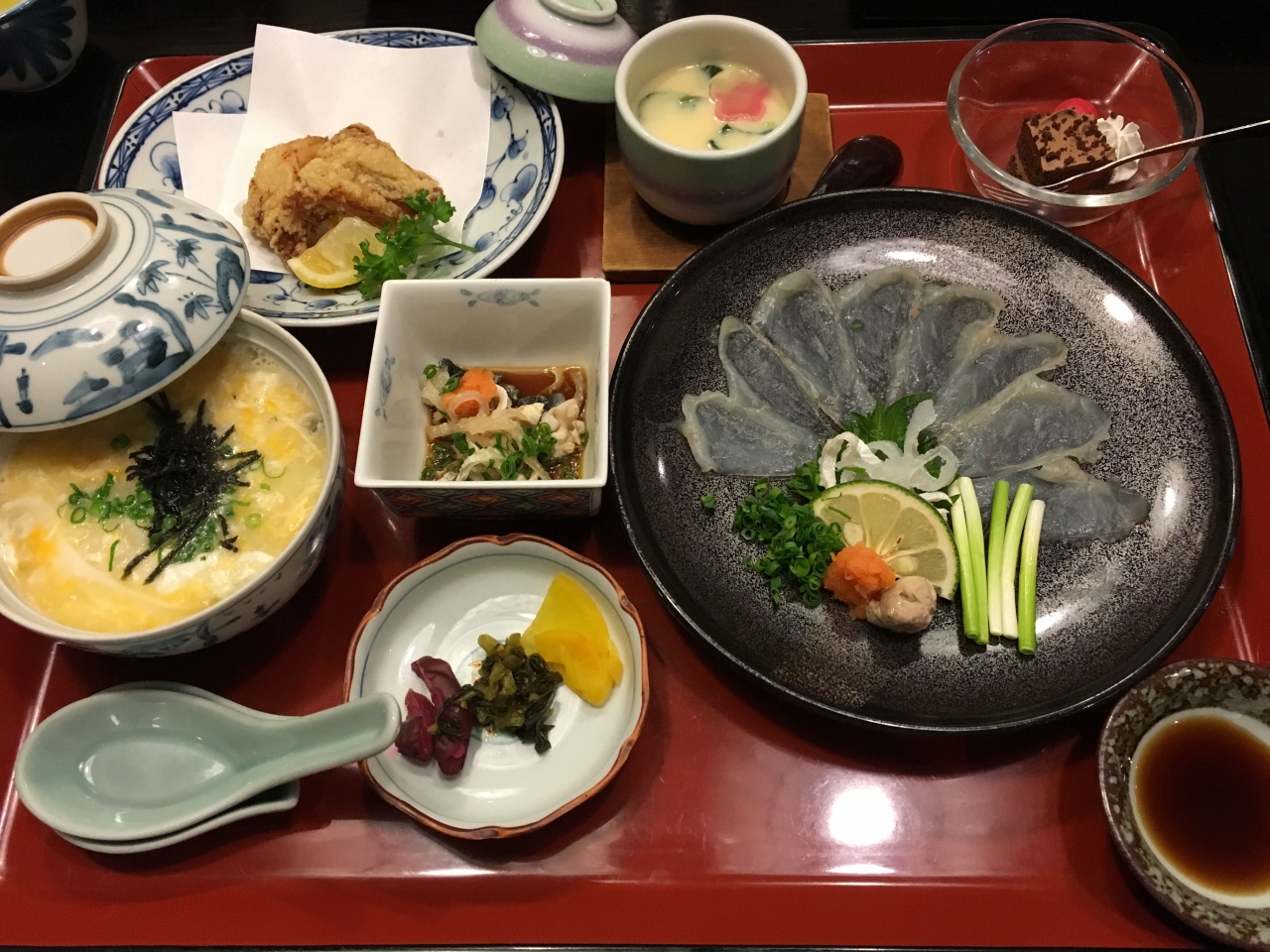 毎年別大マラソンの1週間前に行われています。大分市内の料理店でふぐのランチコースが¥2800と格安で食べれるとあって、有名店は早くから予約が埋まります(昨年までは¥2500でしたが・・・)今回は「天まで上がれ」というお店でいただきましたが、皮の和え物、唐揚げ、茶わん蒸し、フグ刺し、フグ雑炊、デザートといった内容でした。大分のフグは美味いですよ!