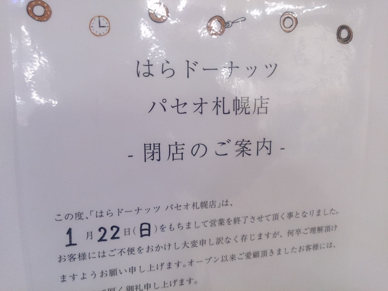 人気のドーナツ屋さんと思っていました。いつも客がドーナツとドリンク飲んでいたし、最近、全品108円で行列もできていたし。そしたら突然の閉店。そりゃないしょ、好きだったのに。神戸の豆腐屋さんが考えたおからを使ったドーナツ。健康的な感じがしておやつには、けっこうな割合で、はらドーナツでした。コンビニで買う気もしないし、大手ドーナツ屋のは甘く油っこいし、復活を望みます。