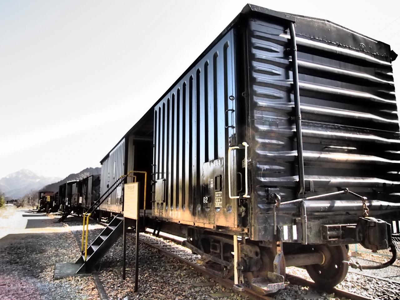トラック輸送が始まる前は、列車で貨物輸送をしていたので、その頃の車両が保存されていて、実際に中に入る事も出来ちゃいます。