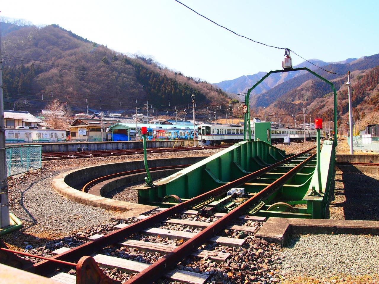 冬の間は運休ですが、春になってSLの運行が再開されたら活躍する、SL車両の回転台もあります。 そばにはベンチまで置いてあって、間近で見学することも出来ちゃいます。