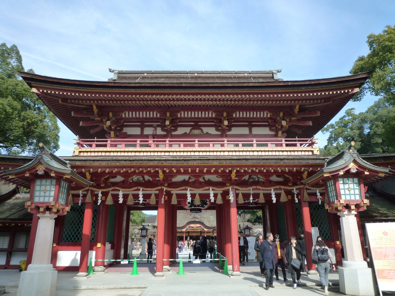大宰府天満宮の楼門で、太鼓橋・心字池側から見た形状と、