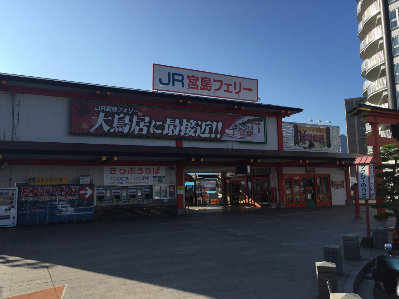 宮島に渡るにはフェリーが2社あります。JR西日本の宮島フェリーと宮島松大汽船です。料金も同じでかかる時間も一緒(?)ですが、JRの方が本数も多くて時間によっては大鳥居に近づいてくれます。