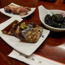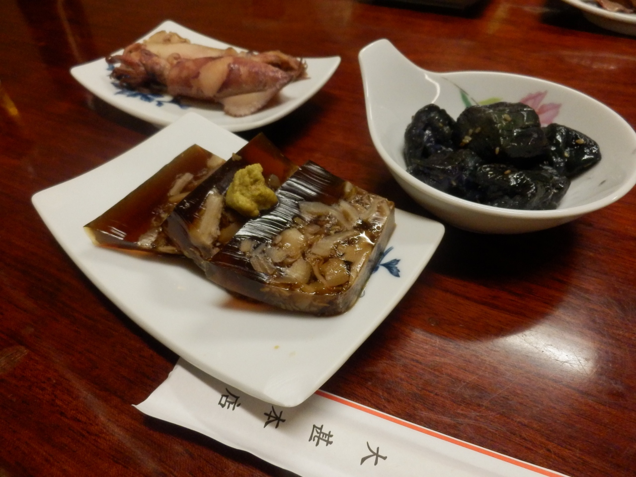 こちらのお店はおつまみをセルフサービスで取りに行くシステムとなっていて、価格は明示されていませんが、お皿によって違うようで、回転寿司のように、お会計はテーブルに残ったお皿を数えて計算してました。