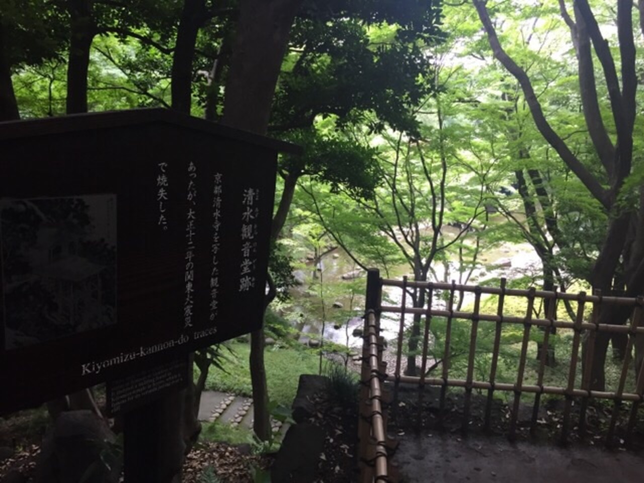 小石川後楽園の中の意味ありげな何かの跡地ぽい空間ですが、こちらは清水観音堂跡で、京都清水寺を写した観音堂があった場所のようです。建物自体は大正12年の関東大震災の際に消失してしまったそうですが、現存すればかなり眺めの良い雰囲気ある建物になるので、残念です。