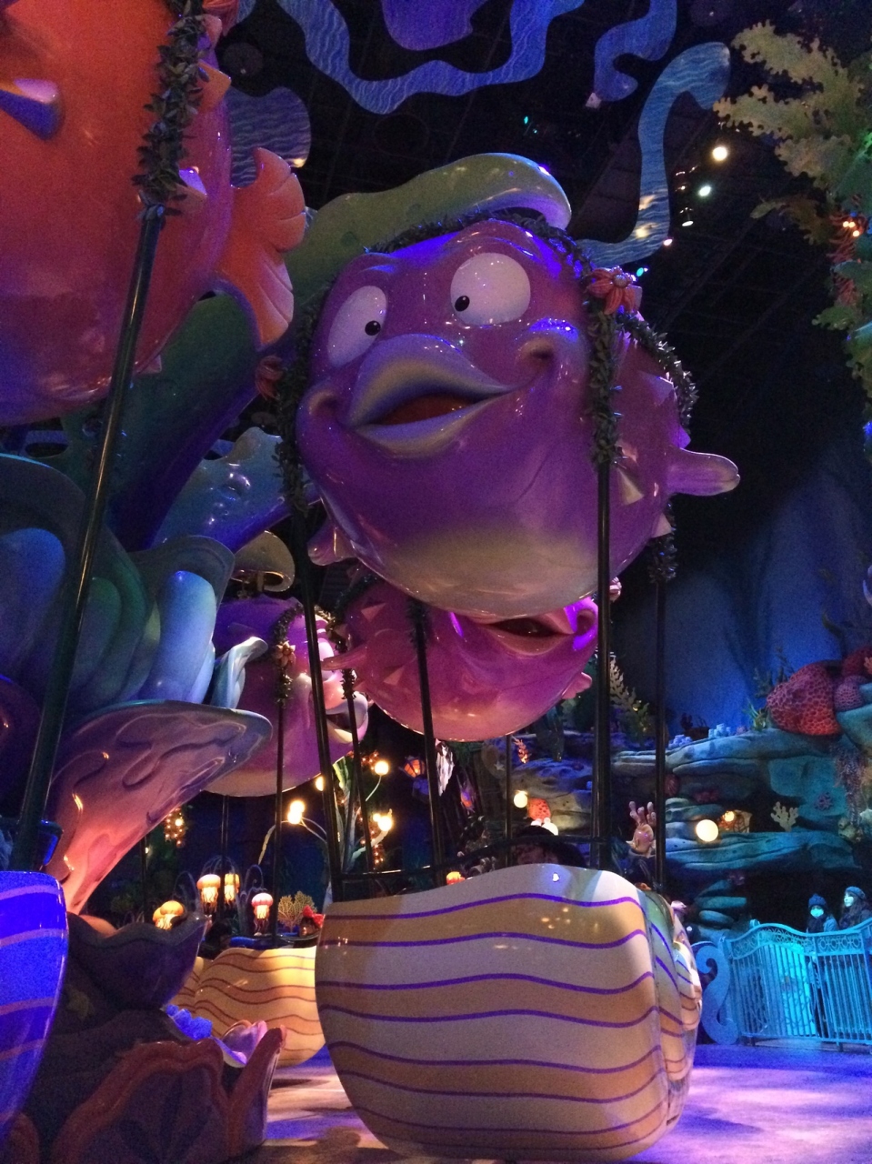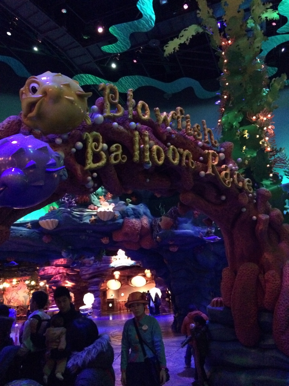 まんまるい不思議な魚に吊り下げされた巻き貝のようなものに乗ってゆっくりと回ります。