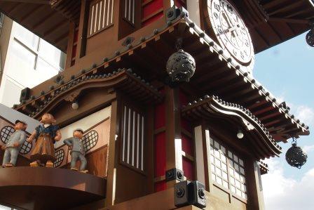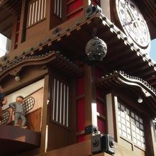 からくりは毎正時に動くのだと思い油断してたところ、突如動き出したので大慌て。分かってればきちんと撮ろうと構えたのに。11月の末のことだったのですが、時期によっては30分ごとにからくりが動くのだそうです。全体がせり上がることで現れる最下段が道後温泉本館の湯船を模していて、湯に浸かっている一般市民の人形がなんとも可笑しく、かわいらしく感じました。