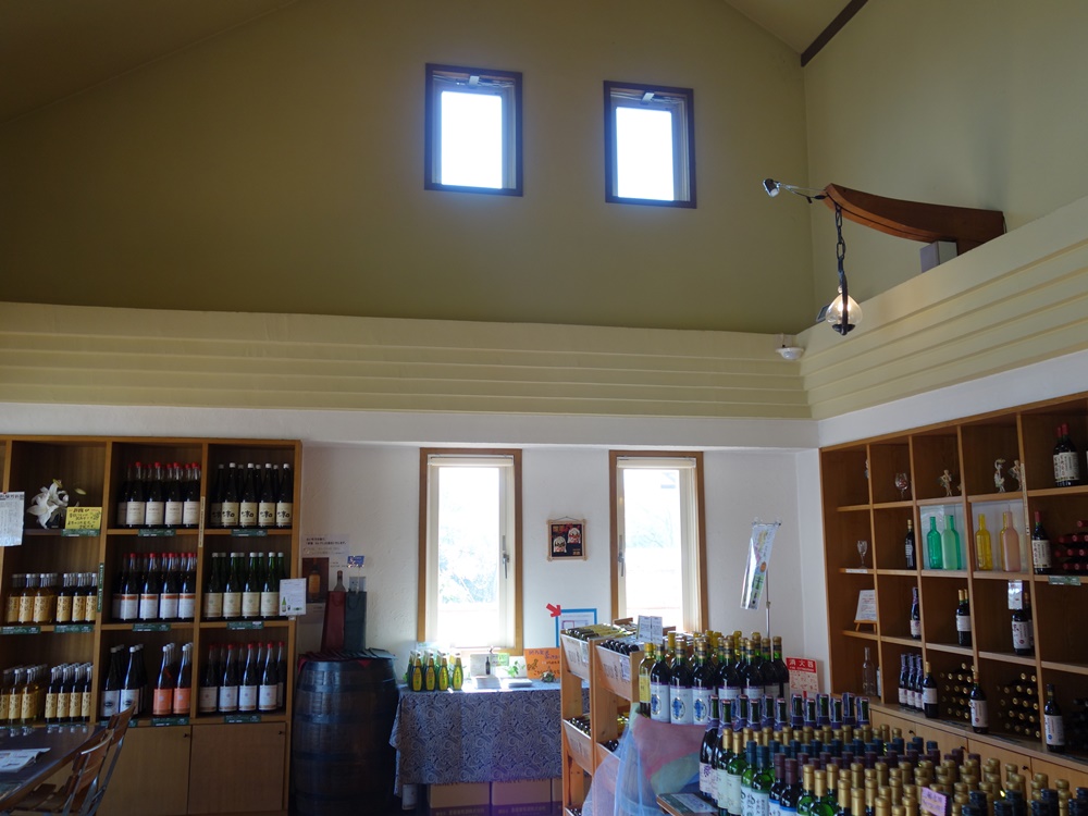 赤い屋根の建物がかわいらしいワイナリーです。冷蔵庫にたくさんの試飲用ボトルが入っていて自由に試飲できます。ジュースもあります。あまりに種類が多くて、奥の方に入っているボトルまで取り出す気力がなくなってしまう・・・。天井が高く広々としていて明るい店内でした。地下も自由に見学できました。