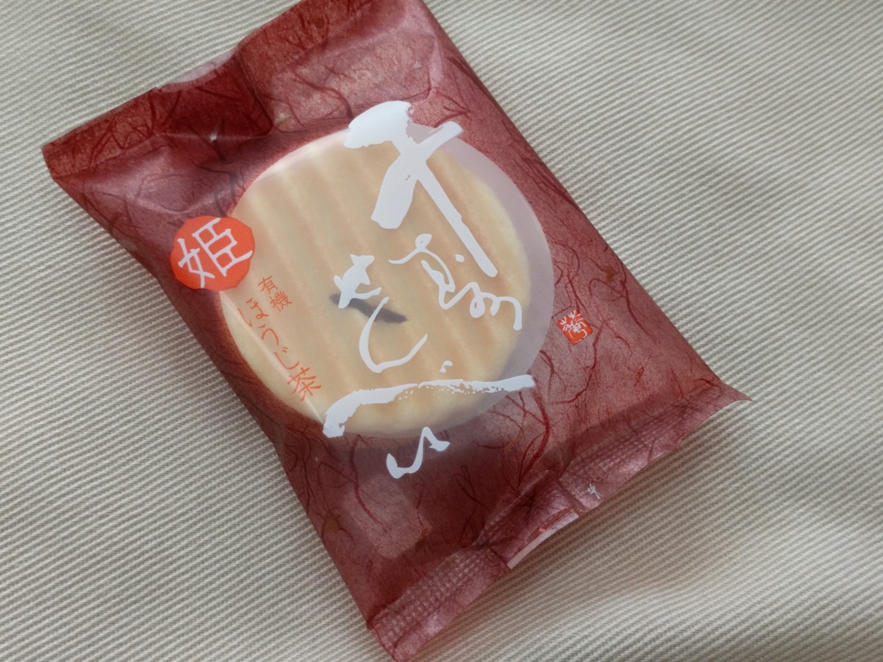 「鼓月 大丸京都店」に行った。姫千寿せんべいは女性でも一口で食べられるサイズの千寿せんべいだ。味はシュガークリームと有機ほうじ茶の2種類有る。どっちも全国で買えるが、京都っぽいのが有機ほうじ茶ってことでこっちにした。香りがいい。