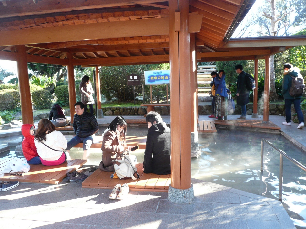 園内には足湯があり、数人の入園者が湯に浸かっていました。私は、他にも見学したい地獄があったので、足湯は省略しました。