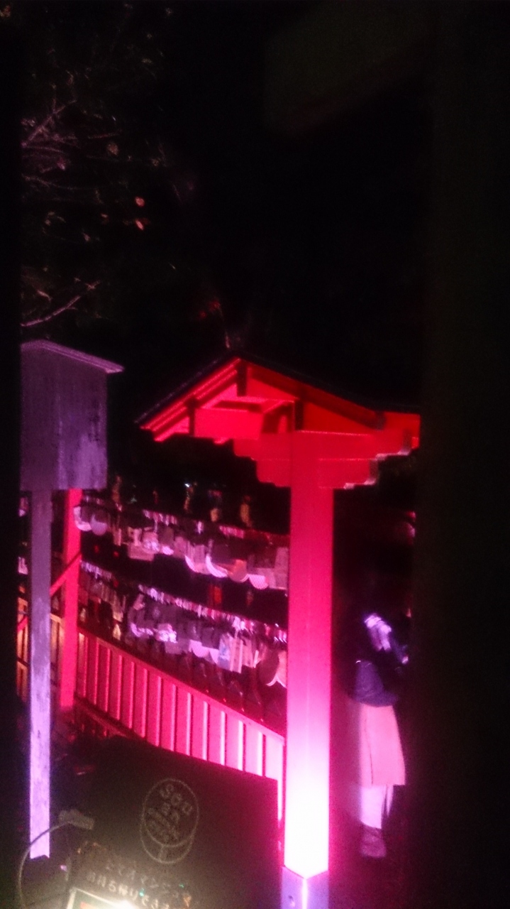 この石浦神社は普通のありがちな神社と違っているところは、境内でミニライブやパフォーマンスなどが開催されたりしているところです。ライトアップもされたりしてかなり神社にしては派手だと思います。
