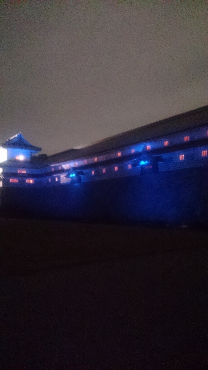 自分が行ったとき、金沢城のライトアップの色はブルーでした。