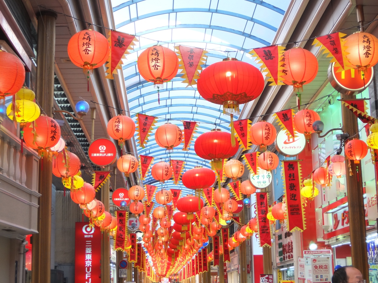 多くの有名店が並ぶ長崎観光の中心地ですが、お祭中は上のアーケードが見えないほどのランタンによって彩られることになります。