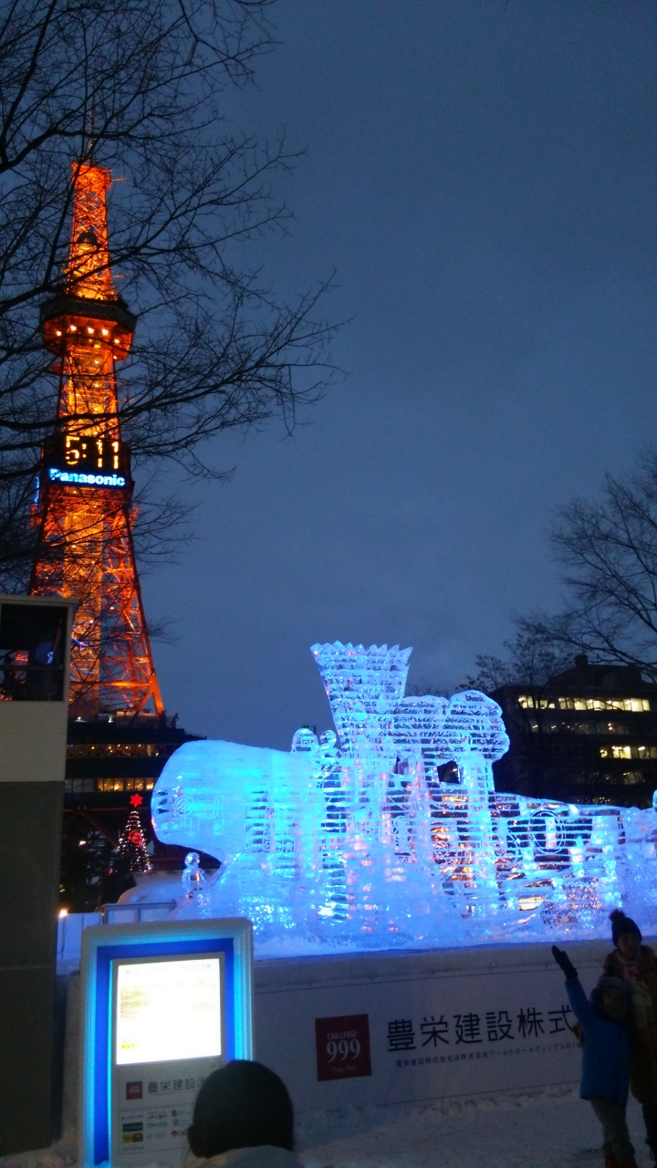 去年はオータムフェスト、今年は雪まつりで行きました。1丁目から11丁目まで長い公園でイベント開催時はたくさんの人で歩くのも大変ですが、1日楽しめる公園です。公園にはテレビ塔もあって夕方からライトアップされた塔はとても綺麗です。
