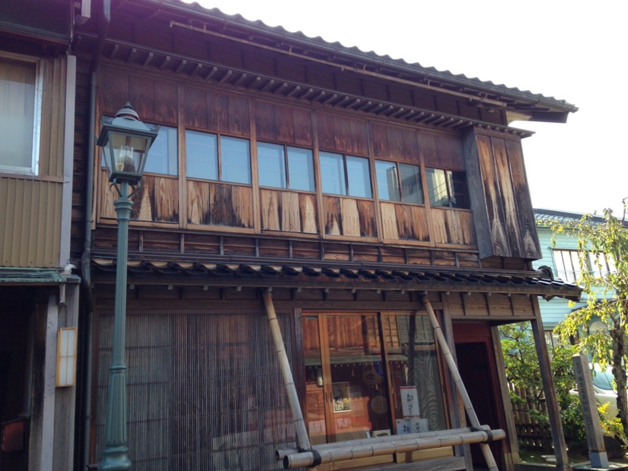 西茶屋街の茶屋の雰囲気がある建物が並んでいるうちの一番奥の建物です。