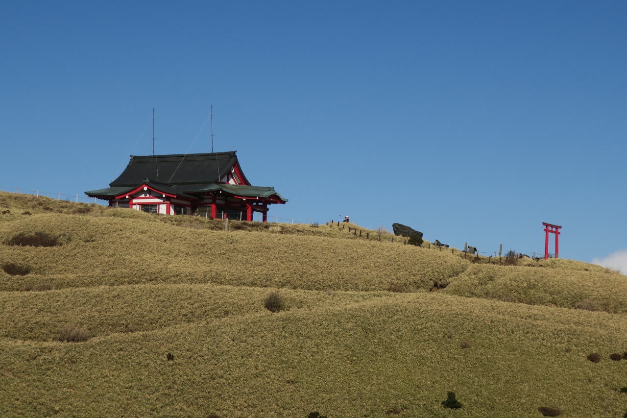 全長1783m、約7分で頂上に着くと、確かに芦ノ湖を中心に箱庭のような箱根の全景が広がります。また北西には富士山、遠くには駿河湾や伊豆七島まで見え、まさしく大パノラマ。往復1300円の価値ありです。