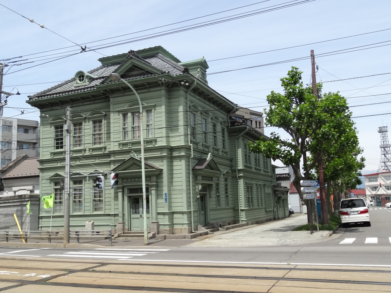 今も現役の社屋ですが、1916年に完成したもので特徴的なうすい緑の建物が印象的です。ドーマー窓といわれるおしゃれな意匠の建物です。