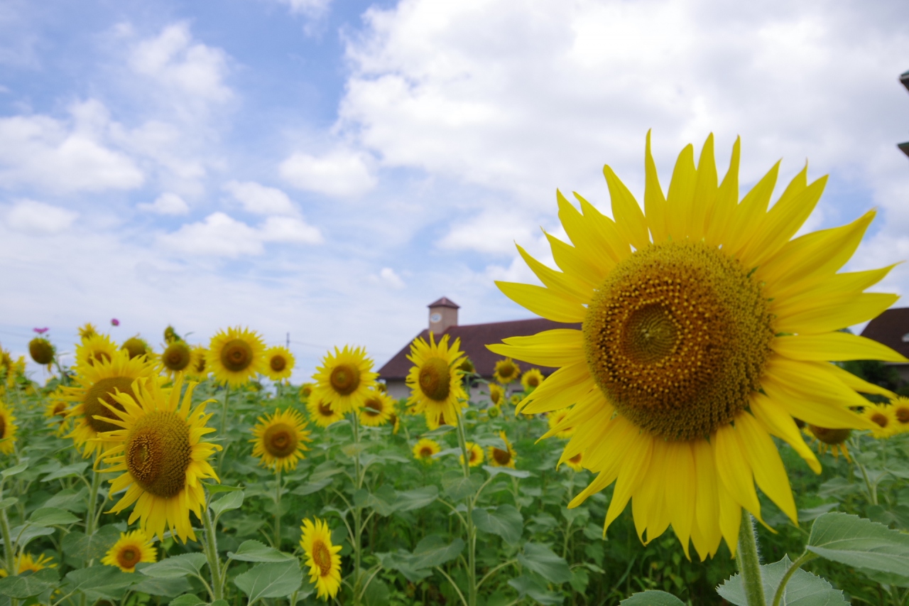 周辺のお花畑が印象的!(夏はひまわり、秋はコスモス)