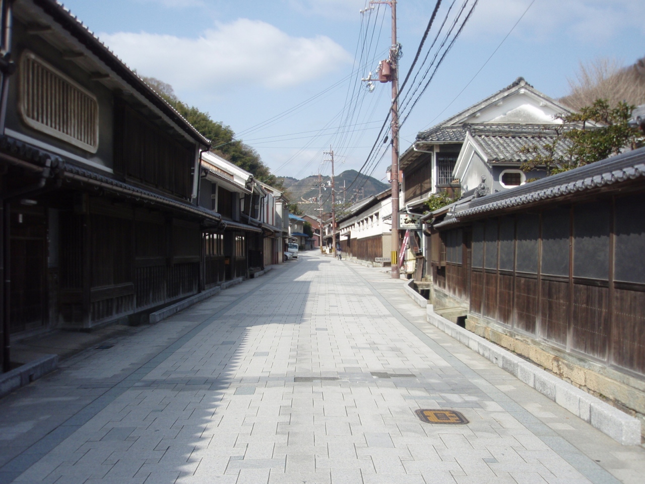 坂越駅から15分ほどで街並みに入ります。石畳が敷かれ整備された道の両側に和風の古い建物が並んでいます。現在も居住されているのですが、生活観が出ていない見事な街並みで気に入りました。木戸門跡があります。また街並みの中ほどに坂越街並み館があります。以前は銀行であったところで、館内には使用していた金庫が置かれていました。現在は資料館になっていて、名所・旧跡、特産品等の展示場になっています。山に登らなくても、妙見寺等と合わせて見れば更に話題が増えますよ