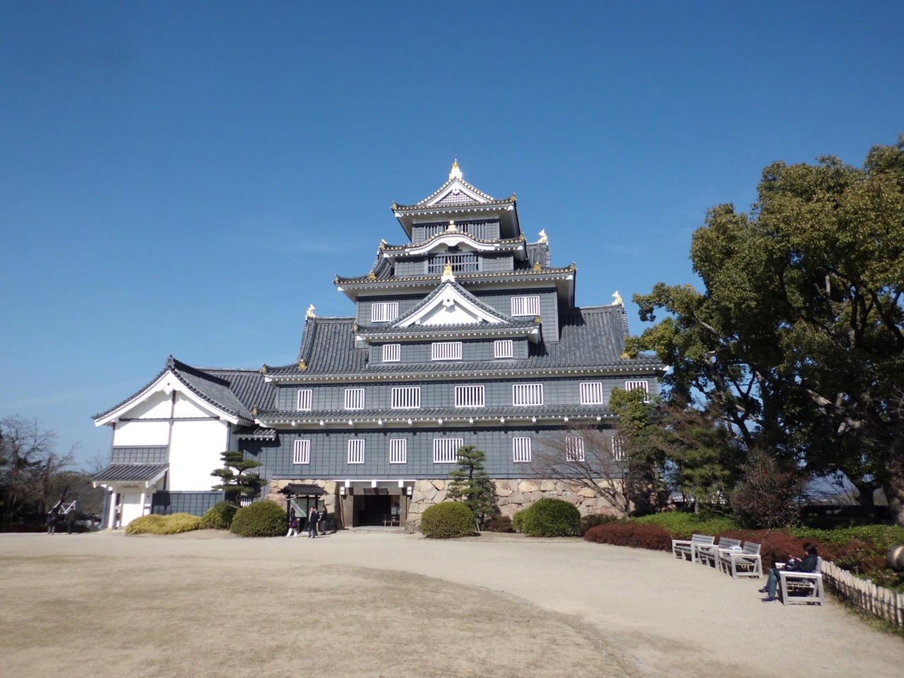 後楽園からお城を見学。共通券を買うとお得です。宇喜多家から始まり池田家に引き継がれた日本を代表する城郭建築なのだそうです。特徴は外観の黒い色で黒漆が塗られていたため「烏城」と呼ばれています。見どころはたくさんありますが今まで見てきたほかのお城とちょっと違うのはまずエレベーターで上階にあがり楽なところでした。あとはぐるぐると周りながら展示物を見て下の方の階には昔の衣装や刀などを持ったり、駕籠に乗って写真を撮ることができます。また備前焼工房で体験ができたり喫茶もありました。なんだか近代的な?お城でした。
