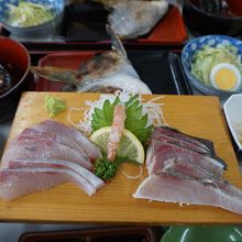 桜勘の刺身、あぶり刺し、あら汁、煮つけ、カマ焼き、サラダ、デザートがついています。どれを食べても間違いないおいしさです。悩んだときはこれがお勧めです。