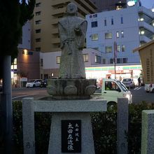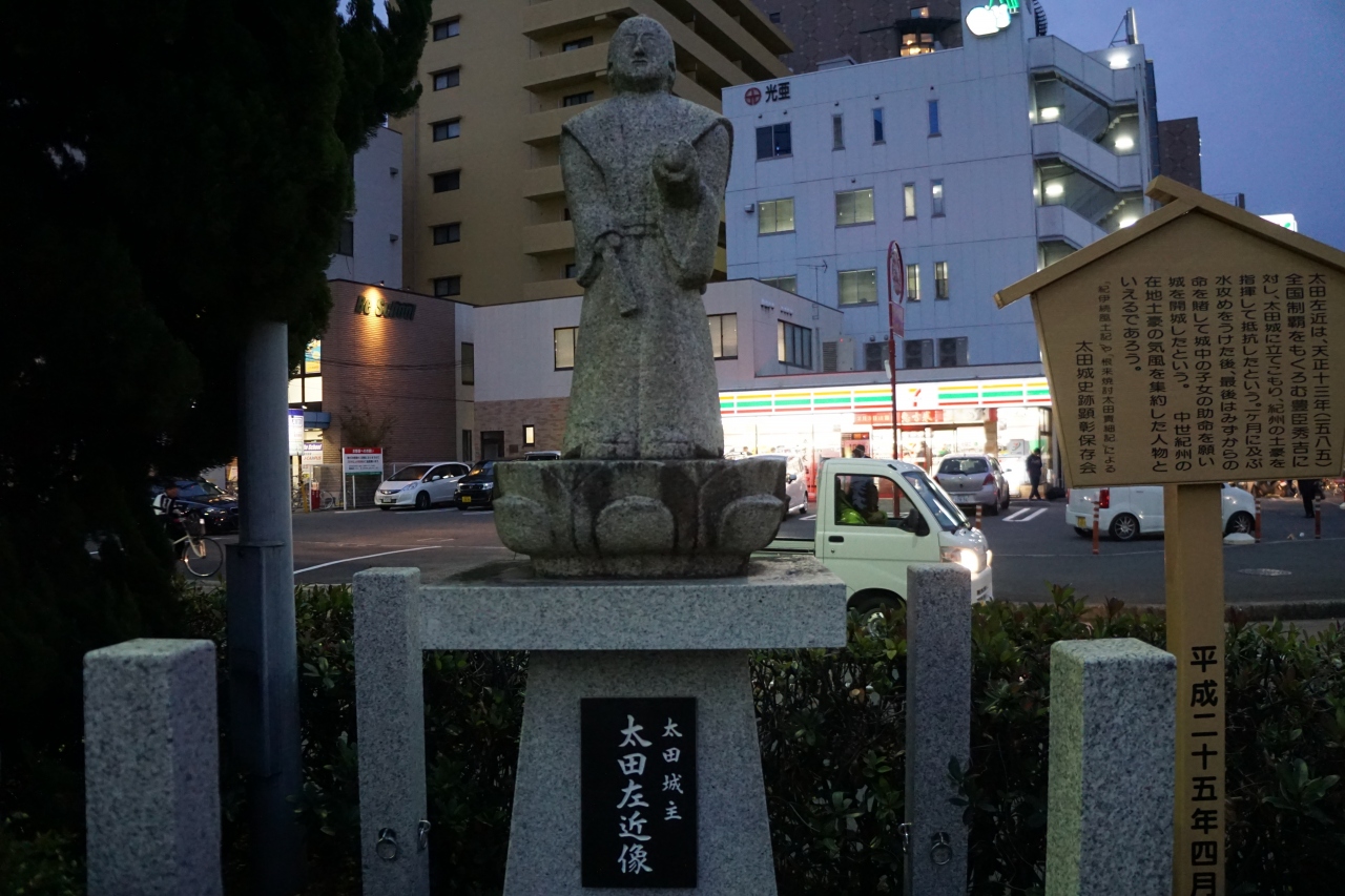 太田左近像は、JR和歌山駅の裏手。ロータリーの端っこです。像自体はあまり出来は良くなくて、残念な感じもしなくはないのですが、この太田左近はなかなかの勇者。6万とも10万とも言われた秀吉の大軍を太田城で迎え撃つ。激しい抵抗に、秀吉は水攻めに切り替え、自害に追い込んだということです。傍らの駒札には中世紀州の在地土豪の典型と紹介されています。