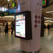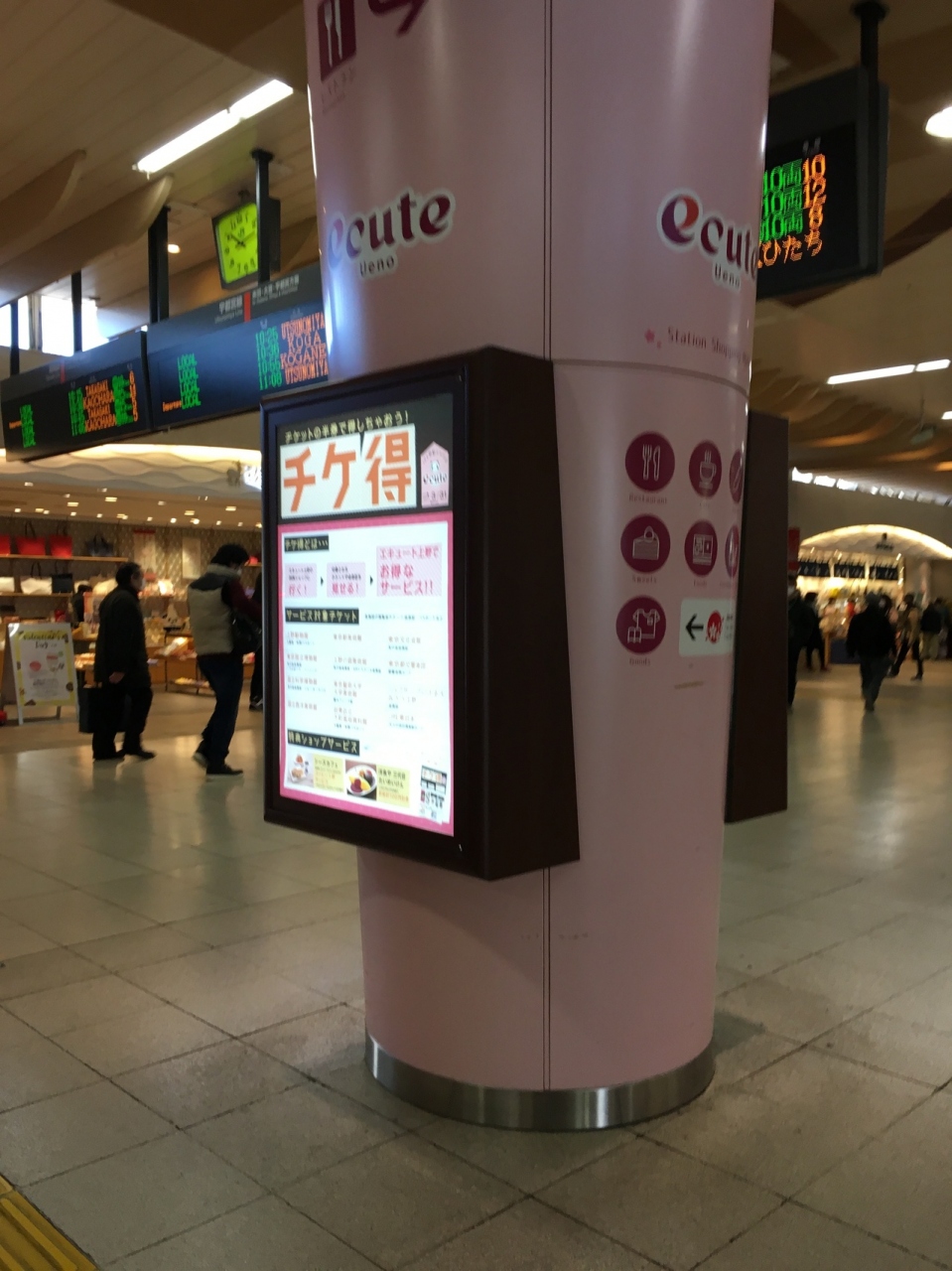 上野駅に直結しているエキュートという商業施設です。こちらのエキュートに入っている店舗ではチケ得というサービスがありました。エキュート内に上野エリアの美術館や劇場のチケット売り場があり、チケットを利用する前でも後でもチケットを提示するといろいろなサービスを受けられます。たいめいけんではレジでチケットを提示するとお会計から100円値引きしてくれました。