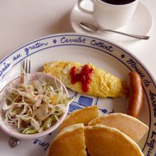 お品書きでは、トースト、サラダ、ウィンナー、玉子、ブレンドコーヒーから成る、となっていたが、実際にはトーストの代わりにパンケーキが提供された。パンケーキの方が手間が掛かる気がするので、何故トーストにしなかったのかは不明。