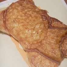 カリカリのクロワッサン風の生地で、たい焼きをこしらえている。生地は、表面がキャラメリゼされていて、カリカリ感が増している。この皮だけでも充分美味しい。触ると手がべた付くので、注意が必要だが。