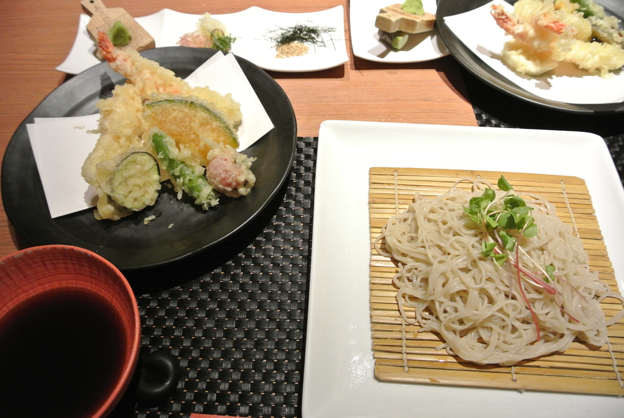 年越しそばを食べに大晦日に訪問しました。予約をしておらずランチの時間帯でしたので満席のため少々待ちましたが、個室を案内してもらえました。店内は高級感があって、落ち着いた雰囲気です。天ざる蕎麦を食べました。天ぷらはサクサク上品に揚がっていて、蕎麦も量は少なめでしたが喉ごしがよく美味しかったです。
