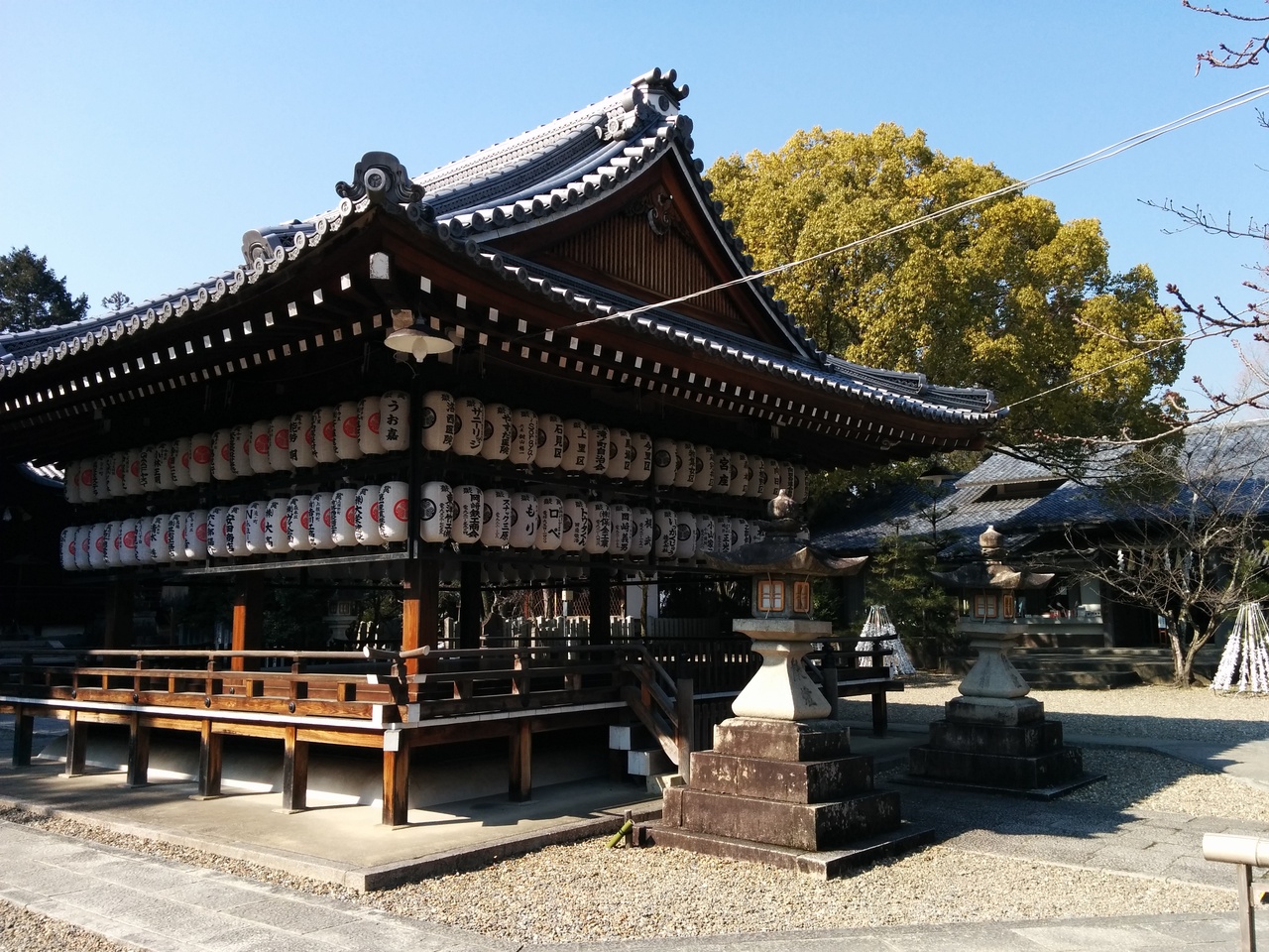 神社境内に入ると、舞楽殿や本殿などがあり、平成30年10月には御鎮座1300年祭の案内が掲出されていました。