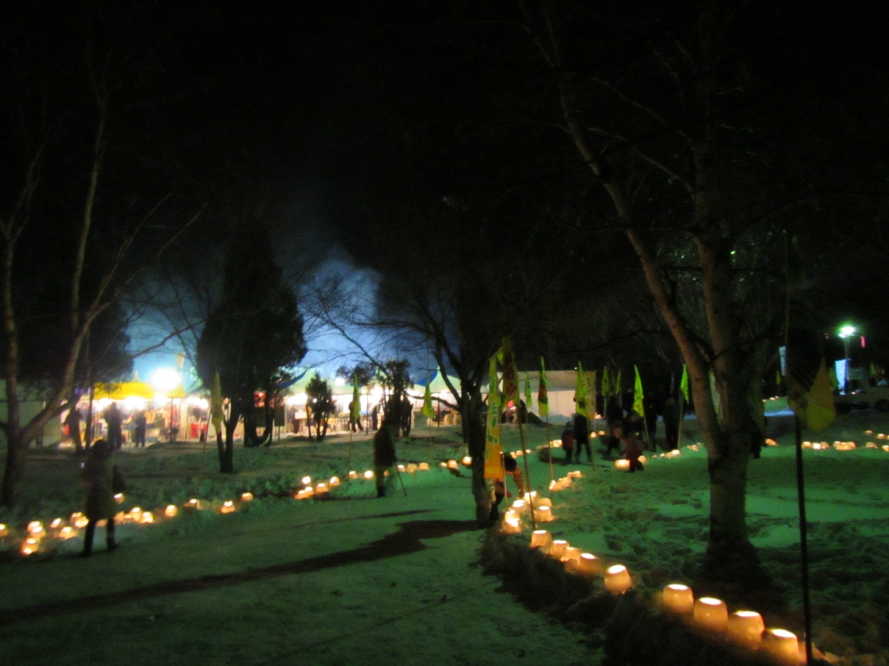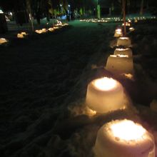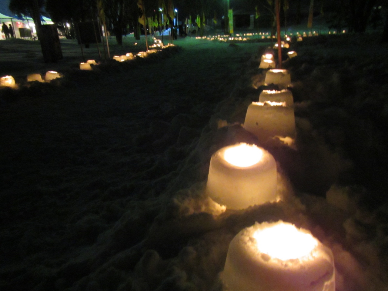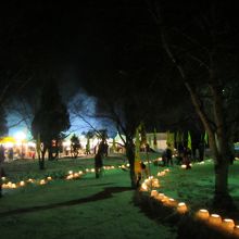 石狩当別駅側の入口からの園路沿いには、暗くなるとアイスキャンドルも灯っていました。