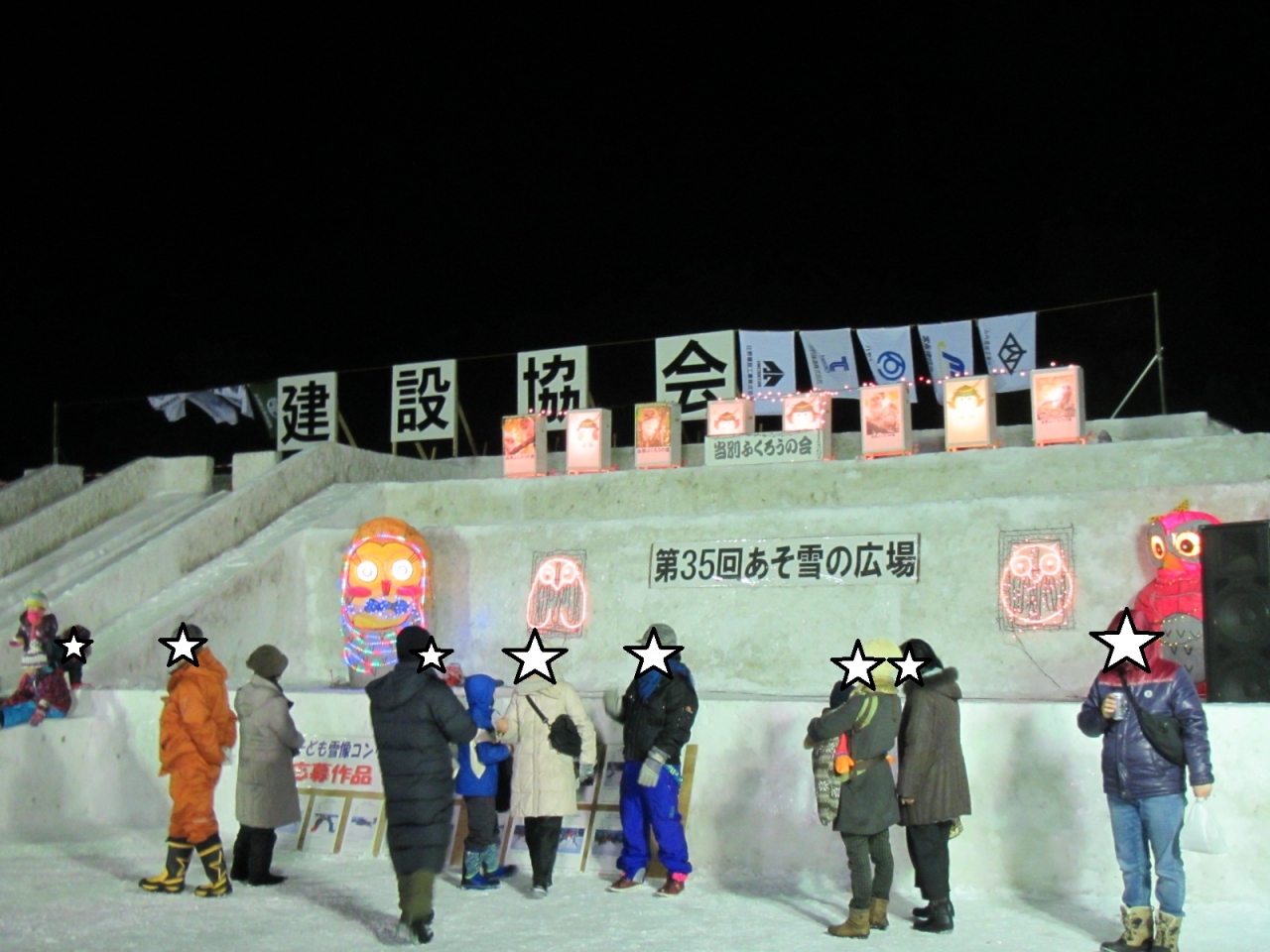 ステージや屋台、同時期に行われるさっぽろ雪まつりと比べると、ささやかながら、雪像滑り台もあります。