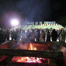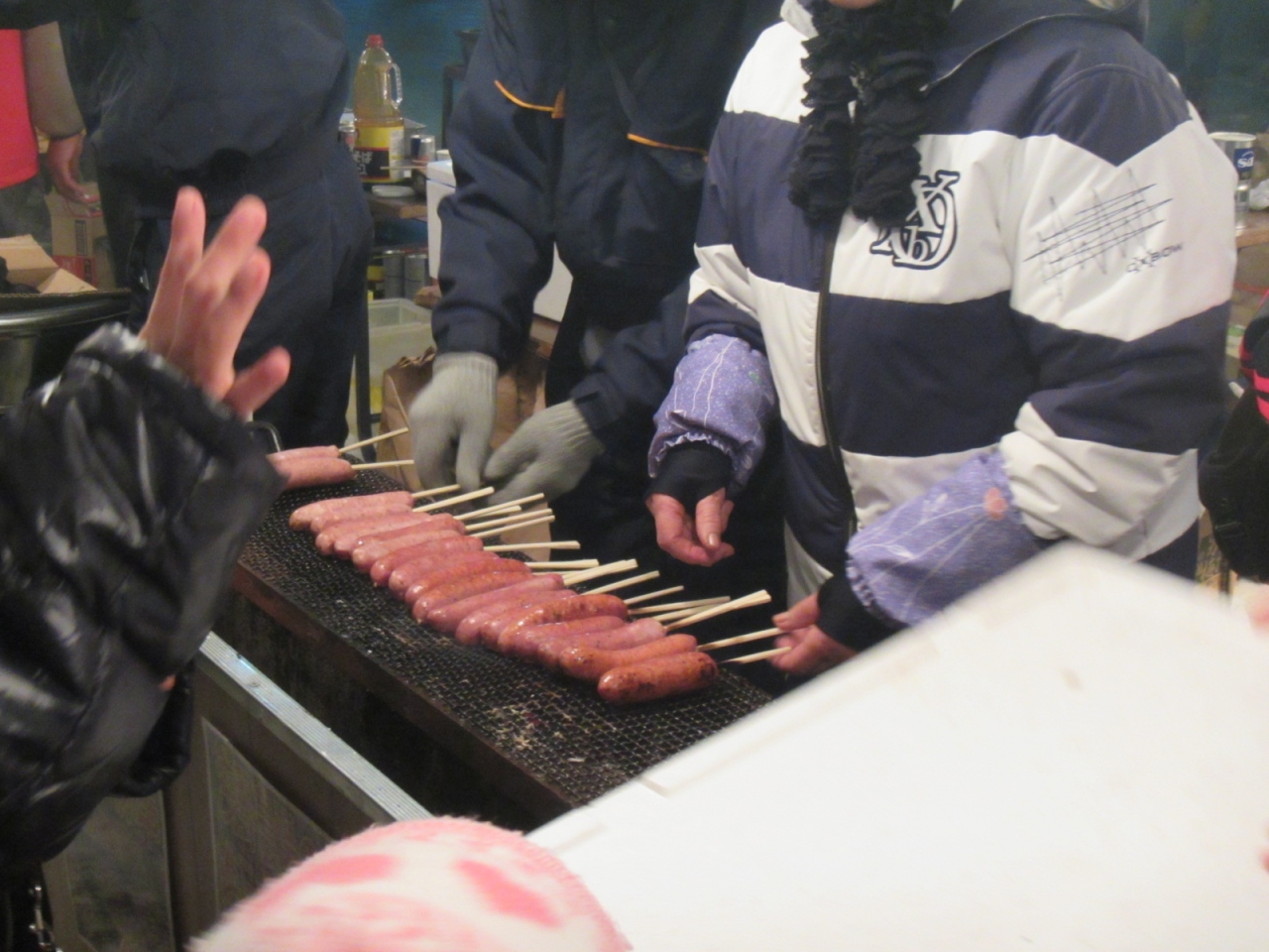 ただ、屋台の売り場窓口の前や暖をとるためのかがり火の前は、かなり混でいました。