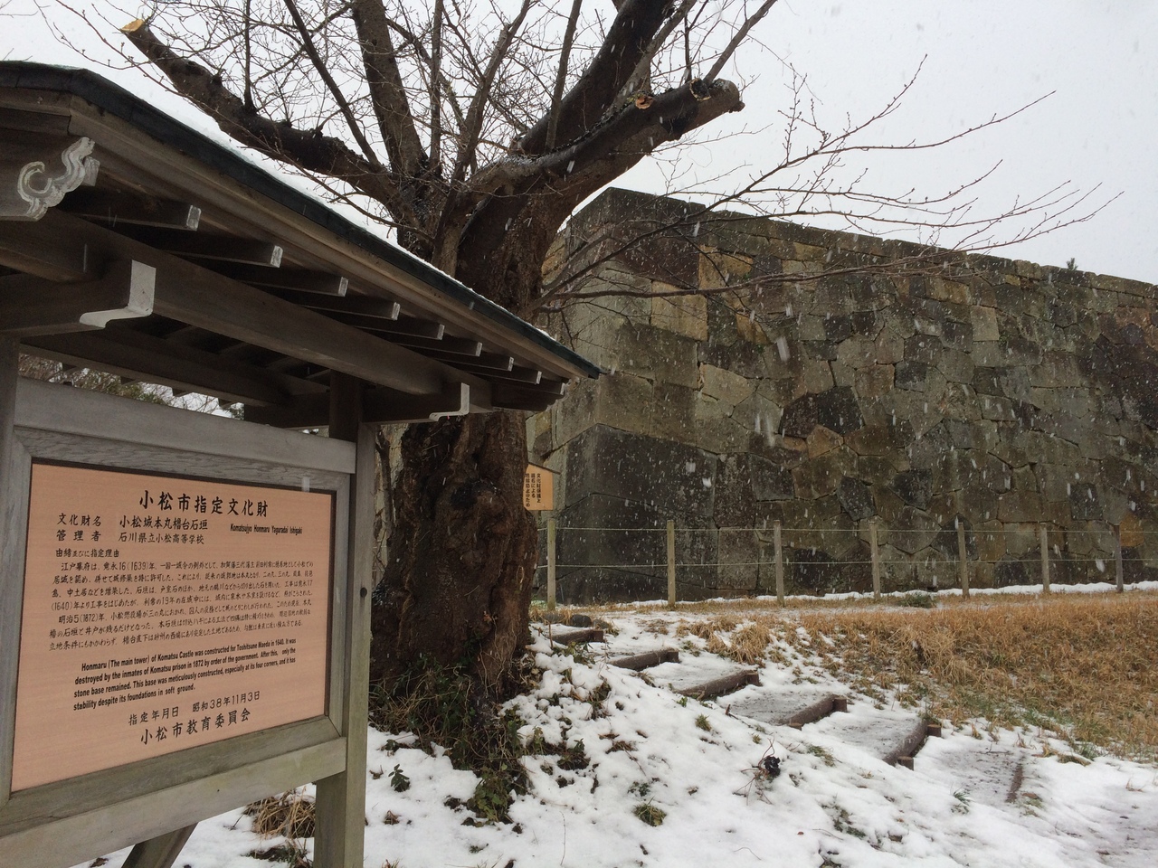 住宅街にあり高校のグランドに隣接しています。石垣が残っているだけで遺構はほとんどなかったですが石垣が巨大で石垣だけ見るのも価値があります。石垣も周りは柵があり近くには行けないようになっています。説明看板があるので城の歴史がわかります。