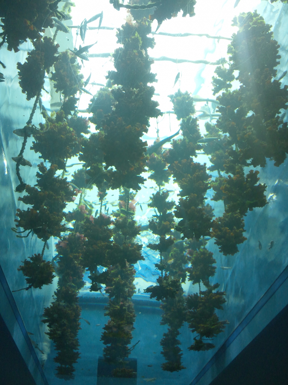 水深8mの大水槽にイワシが放たれていて、他の魚が近づくとまるで生き物のようにうごめくのに見とれました。