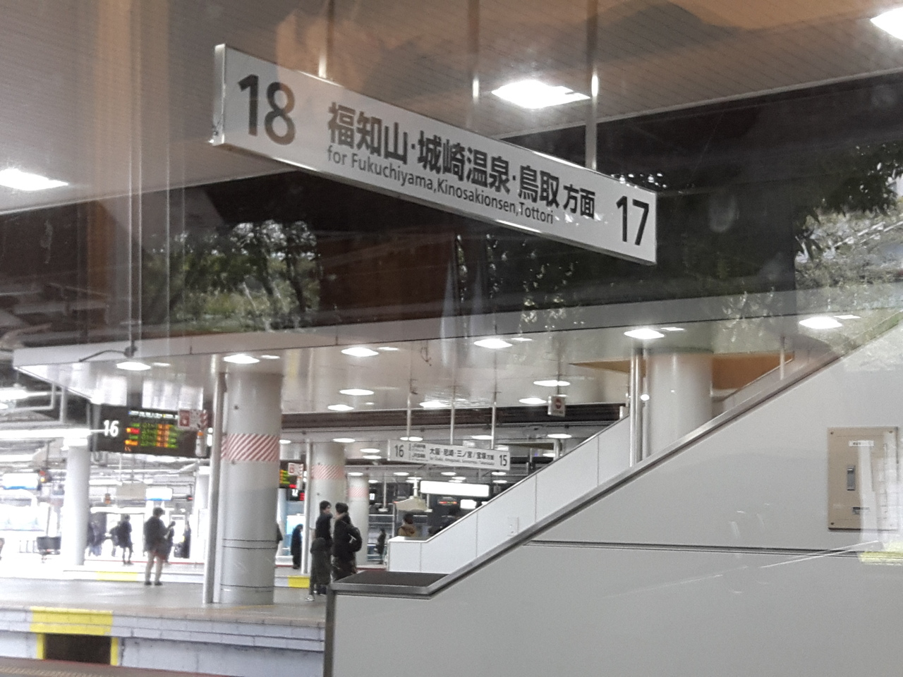 新大阪駅新幹線口をでて、一番奥の18番ホームからの発車です。大阪駅からも乗車できます。宝塚を過ぎ、三田、丹波の篠山、福知山からは山陰線になり、豊岡を経由して城崎温泉へ。約3時間と結構なのりでがある在来線特急の旅を満喫できます。