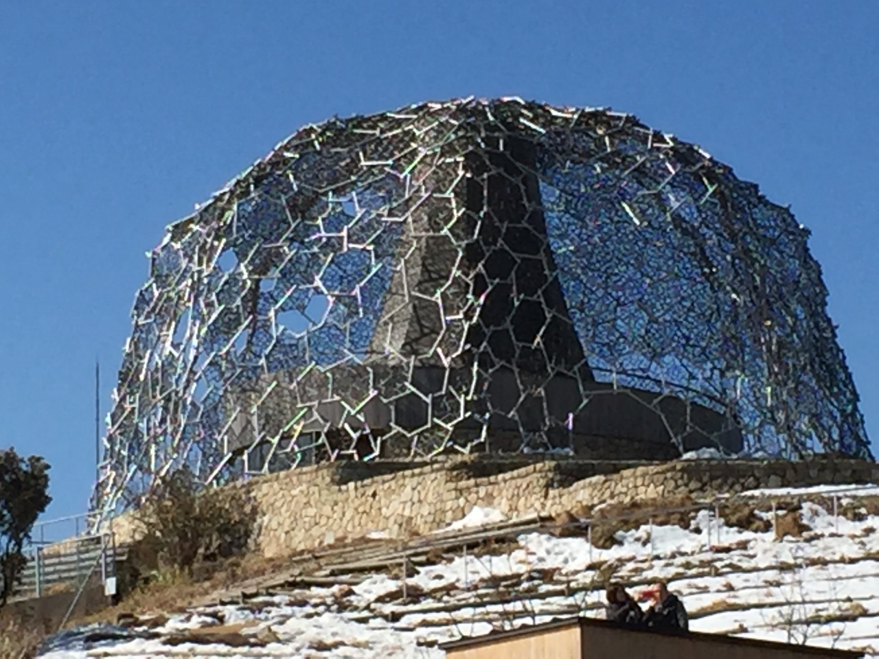 まわりのアミアミの部分に天然の木が使われているのには驚きましたが、夜になってライトアップされたら更に美しそうで是非また行ってみたいです。