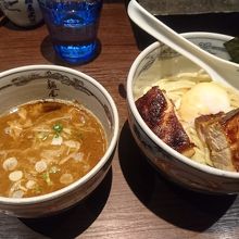神田駅徒歩すぐのところにある有名ラーメン店麺屋武蔵の支店です。この店舗の名物は蒲焼きチャーシュー。蒲焼きのように調理されたチャーシューが豪快にのっています。多店舗と一緒でつけ麺の量は同料金で選べます。ラーメンは多店舗と同様甘めのスープです。