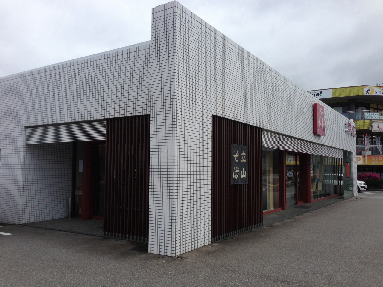 北陸道富山インターの手前にあり、アピタの駐車場の隣にあり、駐車場が用意されており、北陸道に入る前に食べていくことも可能。また東京、大阪方面への高速バスが停車する「上袋」バス停の目の前なのでバスに乗る前に食べていく人も見かけます。