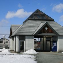 JR奥羽本線(山形線)の無人駅。駅前には山形県立中央病院があり、病院に行けばタクシーのりば、路線バスのバス停もあります。
