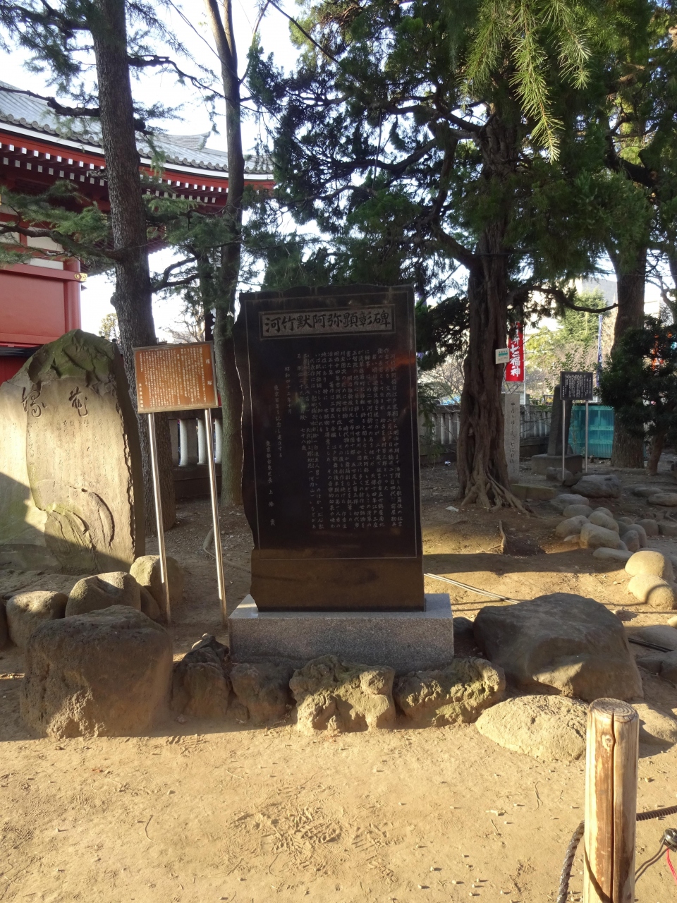 明治期に活躍した河竹黙阿弥は歌舞伎の作者としてよく知られているが、ここ浅草に住んだことで、台東区が「東京100年記念」で立てた。