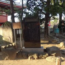 そんな神社の境内の中、鳥居をくぐったすぐのところに黒御影石の立派な碑が立っている。
