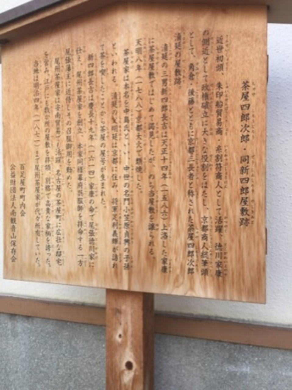 京都の豪商である茶屋四郎次郎とは六代まで中京区新町通蛸薬師下るに住んでいましたが、1708年の大火によってこの地に移転したそうです。