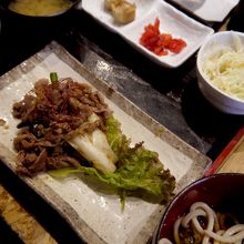 奇妙なのは、味噌汁やご飯があるのに更に小うどんが提供される事。汁は少ないが、それでも汁物と炭水化物を二重に食べている気分。
