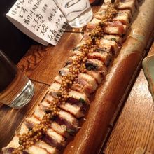 カウンターのみのお店。おまかせコースを頂きました。一番印象に残っているのは名物の鯖サンド。粒マスタードが効いていて美味しかったです。お刺身も新鮮で美味しいし、コスパも良いので帰阪した際はまた立ち寄りたいと思います。