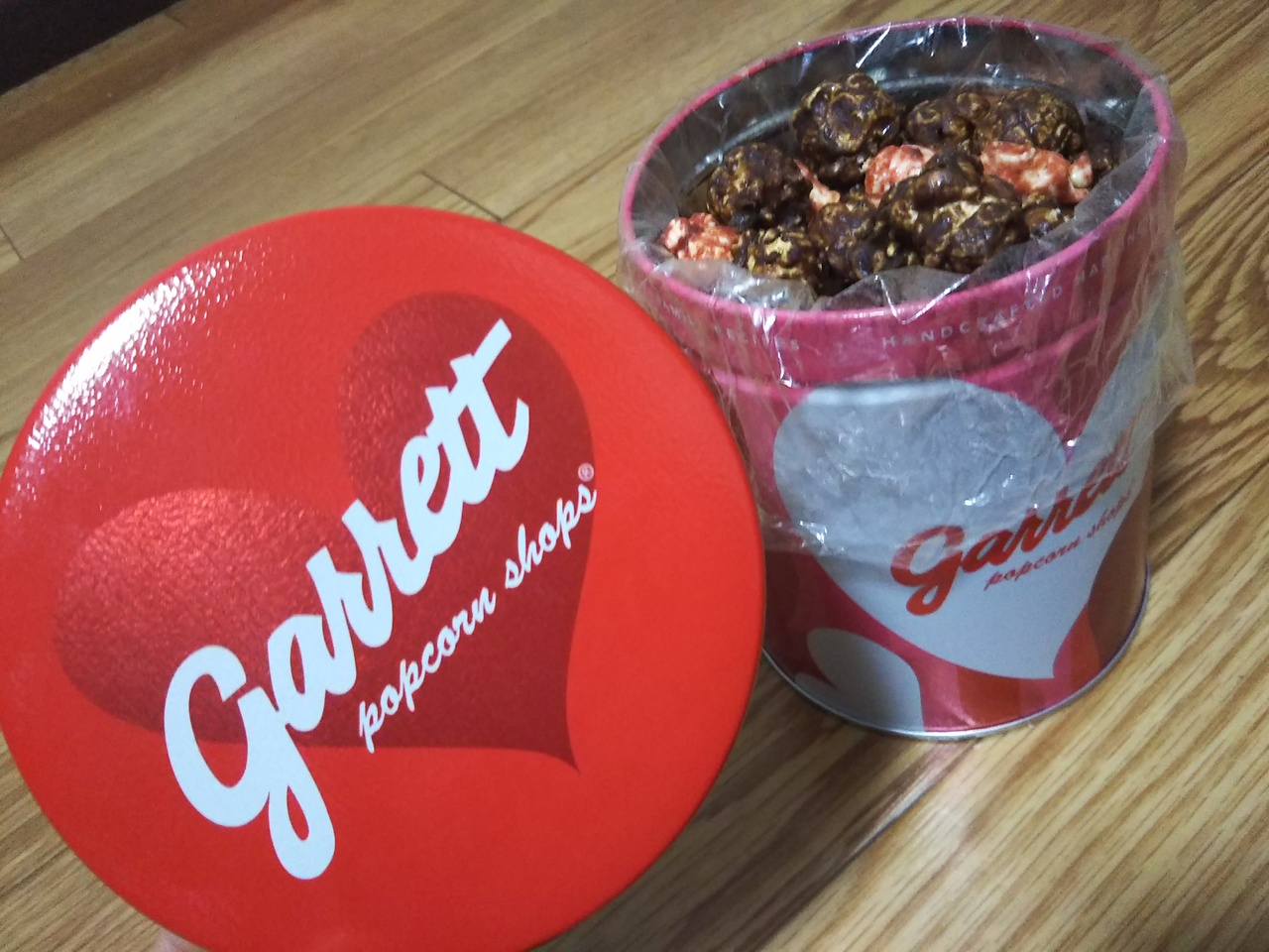 原宿にあるギャレットポップコーンに立ち寄り自分用にバレンタインデー缶を買ってきました。1200円くらいです。一度食べてみたかったし、入れ物がピンクでかわいくて買ってしまいました。チョコレートとストロベリー味のポップコーンはとても美味しいです。ホワイトデーの缶も買いに行きたいなと思いました