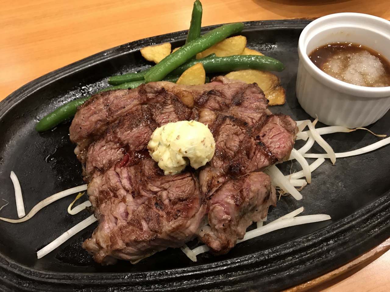 肉の量を選べるのですが、私は一番小さい150gにしました。いただいたリブステーキは柔らかく、ソースとの相性も良かったです。+200円でライスから変更したカレーも、なかなか美味しい品でした。