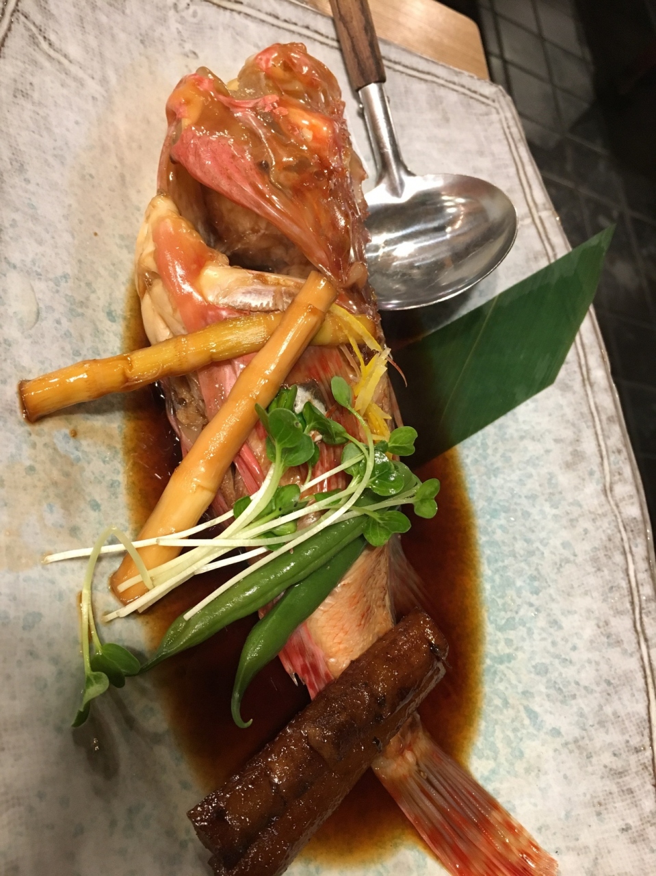 横浜西口にある海鮮居酒屋さんです。飲み放題が男1200円、女800円と格安でした。店員さんのオススメだというオニカサゴの煮付けを注文。一匹丸ごと煮付けられていて、柔らかい身で美味しかったです。タレも美味しいです。これで850円は安いと思います。