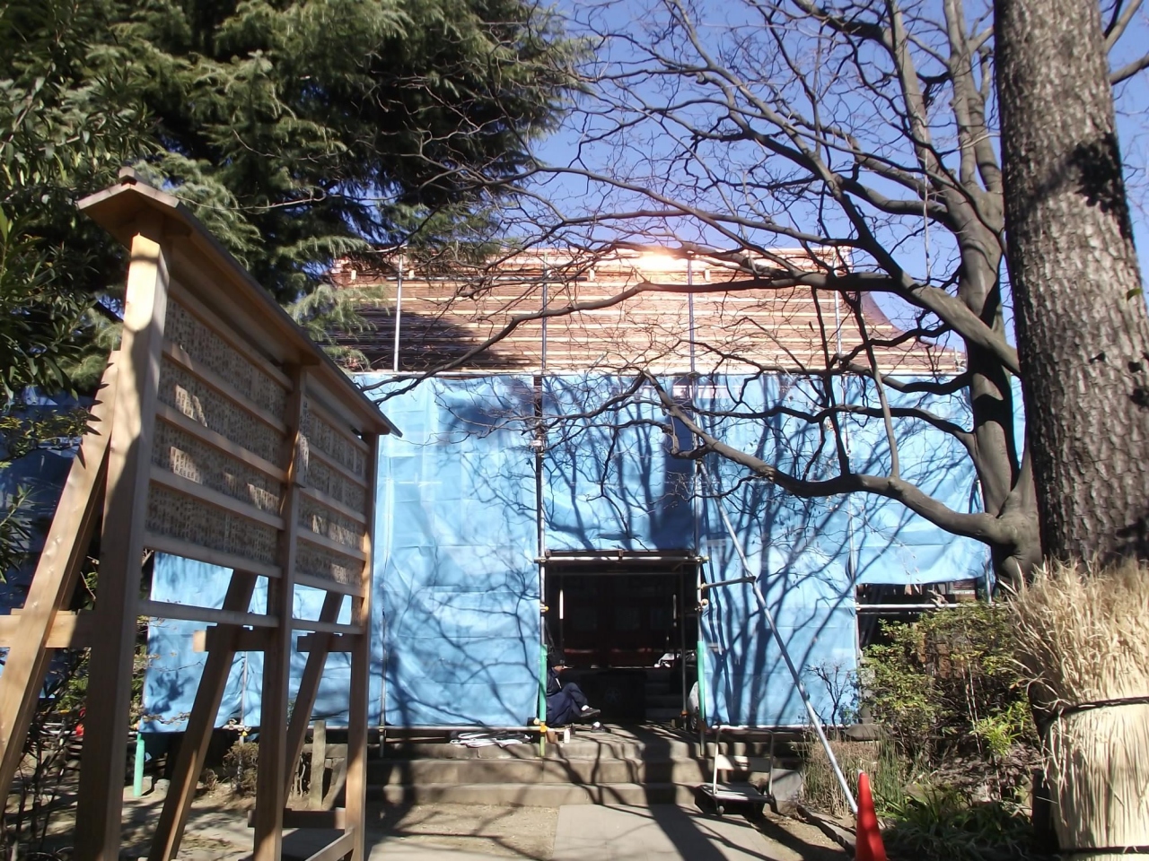 道路沿いにある立派な山門から本堂が見えるが、訪ねた折はブルーシートに覆われ改修中 (?) でした。